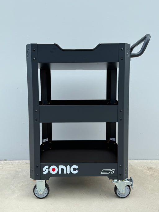 Sonic ToolsCompact service cart with three open shelvesTotal loading capacity of 150kg2-lockable swivel casters and 2-fixed castersSide handle for easy maneuv...